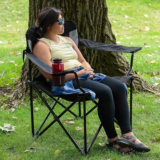 PORTAL Oversized Camping Chair Big and Tall Folding Camp Chair Portable Lawn Chairs Heavy Duty Foldable XXL Outdoor Camping Chair for Adults, Support Up to 600 lbs, Black/Grey