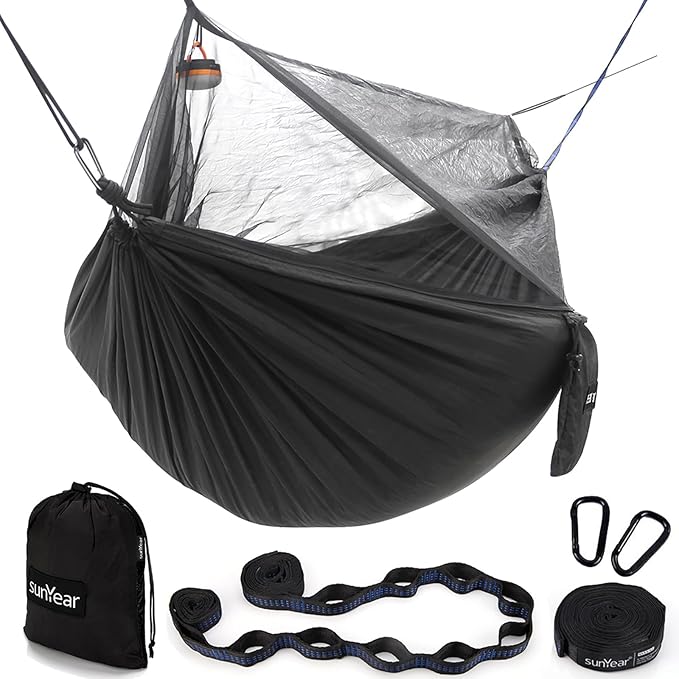 Sunyear Hammock Camping with Rain Fly Tarp and Net, Portable Camping Hammock Double Tree Hammock Outdoor Indoor Backpacking Travel & Survival, 2 Tree Straps,100% Waterproof