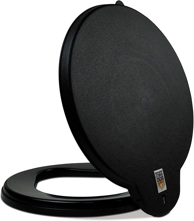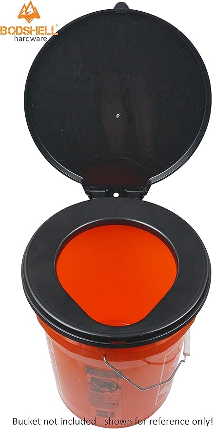 - Portable toilet seat snaps securely onto standard 5 gallon bucket. Closes securely to contain odors.