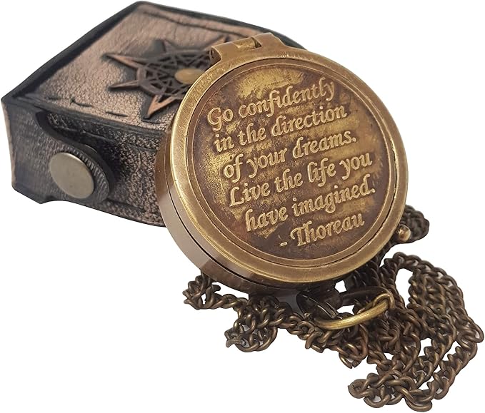 - Product Specifications: The compass with the leather case has a message from the Thoreau’s Poem engraved on its outside. It says “Go Confidently in the Direction of your Dreams. Live the Life you have imagined”. The compass measures 2.36 x 1.97 x 0.71 inches and weighs120 gms.