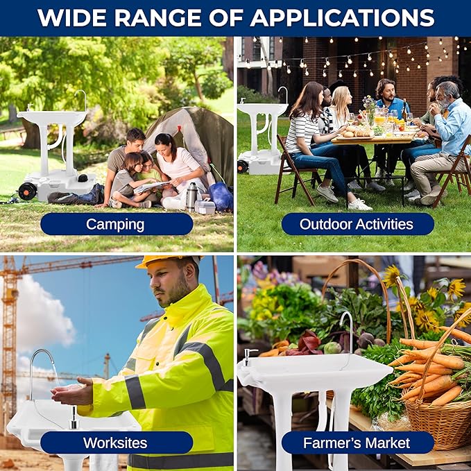 - COMPACT & PORTABLE: The portable hand wash stand offers you a lightweight & handy design allowing you to bring it anywhere needed It has a built-in handle & rolling wheels enabling you to transport it even when filled w/ water