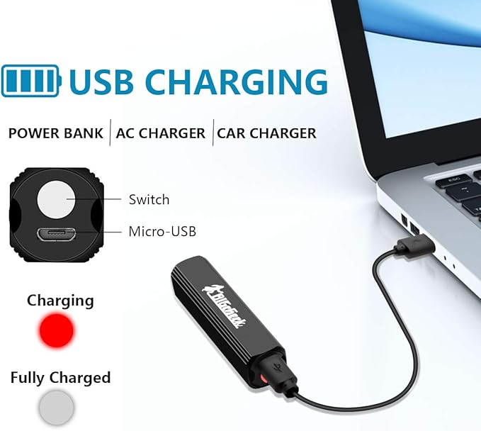 - 【RECHARGEABLE BATTERY】The Rechargeable Flashlight with built-in lithium battery. When the battery runs down, you can use the micro USB cable attached with it to recharge the battery. When in the normal charging state, the indicator turns red. And when the battery is fully recharged, the indicator goes out. It is suitable for portable computers, mobile power and other convenient charging, which makes contributions to environmental protection.