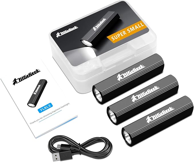 - 【WHAT YOU GET】 Bigcheck Mini Flashlight*3, micro USB cable*1, operation instructions * 1, hand strap*3, and our worry-free 12-month warranty and friendly after-sales service. Let us bring convenience to your life and make your life simple and bright.