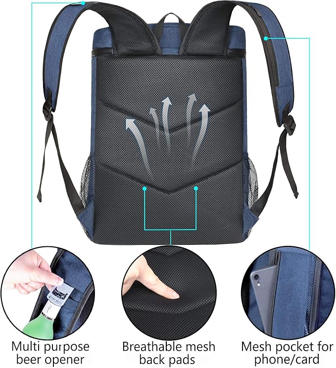 - 【MULTIFUNCTIONAL COOLER BACKPACK】The stylish design of our heat preservation and cooling backpack allows it to be used as a lunch backpack or daily backpack. You can use it as a travel backpack, beach cooling backpack, hiking backpack, camping backpack, picnic backpack, fishing bag, lunch backpack, etc.