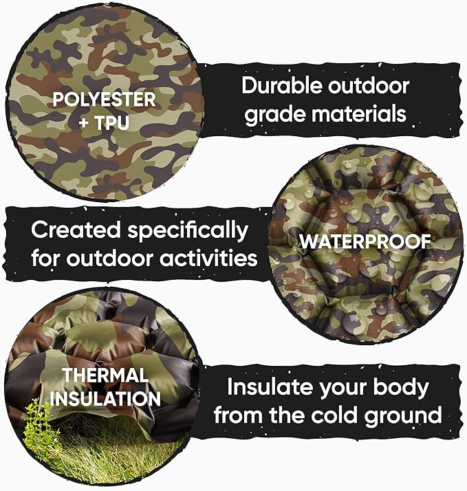 - UNIQUE LONGLASTING DURABILITY: It's the mat of all mats! The inflatable sleeping pad is made of durable, outdoor grade materials. It includes thermal insulation, to keep your body warm from the cold winter ground. Our camping sleeping mat is 100% waterproof, making it perfect for any outdoor activities. You can say goodbye to sore backs and other discomforts normally left by bumps and rocks underneath the floor of your tent!