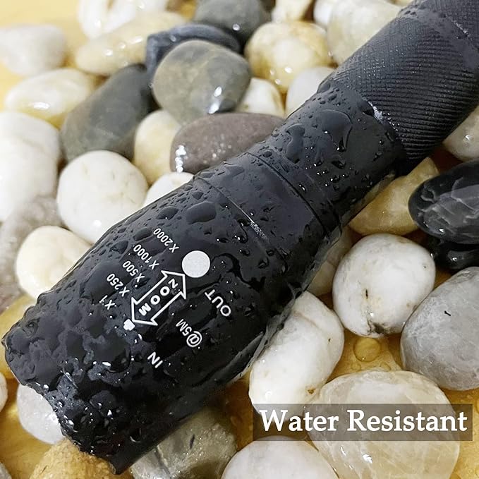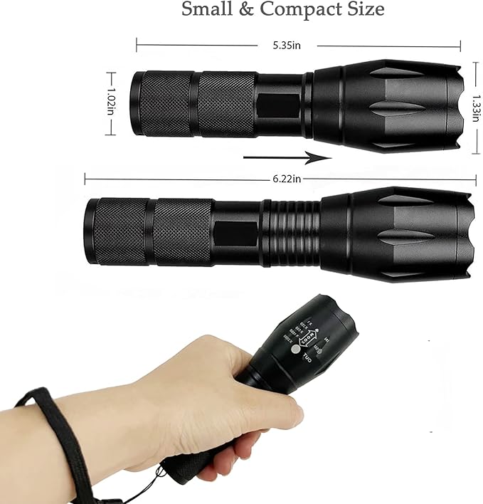 - Single Modes & Simple Switch: Simple Switch to turn on/turn off flashlight. LED, super bright up to 3000 lumens and 500 meters long distance.