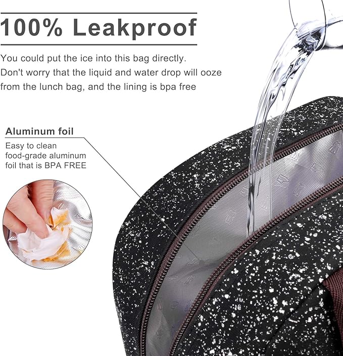BALORAY Lunch Bag for Women Men Insulated Lunch Box for Adult Reusable Lunch Tote Bag for Work, Picnic or Travel (Black Starry)