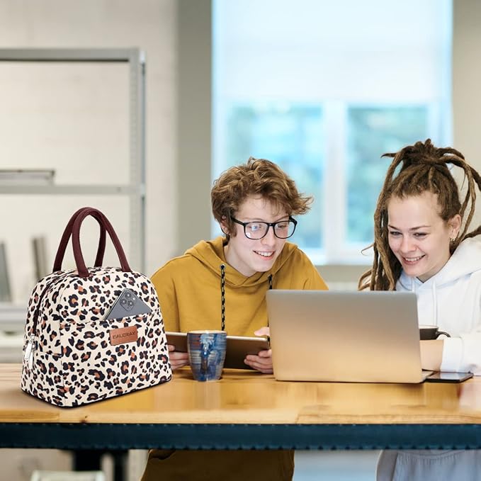 BALORAY Lunch Bag for Women Men Insulated Lunch Box for Adult Reusable Lunch Tote Bag for Work, Picnic or Travel (Beige with leopard)