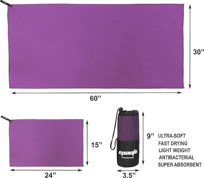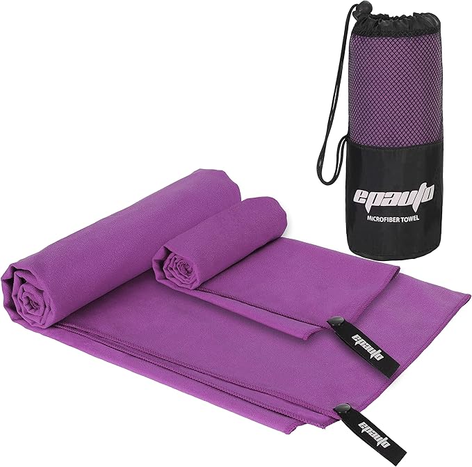 EPAuto 2-Pack Microfiber Fast Drying Travel Gym Towels, Purple, (60''x30'', 24''x15'')
