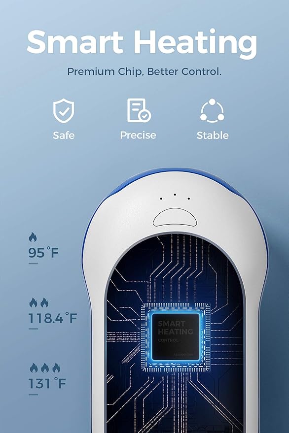 - Safety is our top priority, so we only use premium chipset to regulate the heat levels. A simple button provides access to three levels of heat, ranging from soft warmth to 131°F hot.