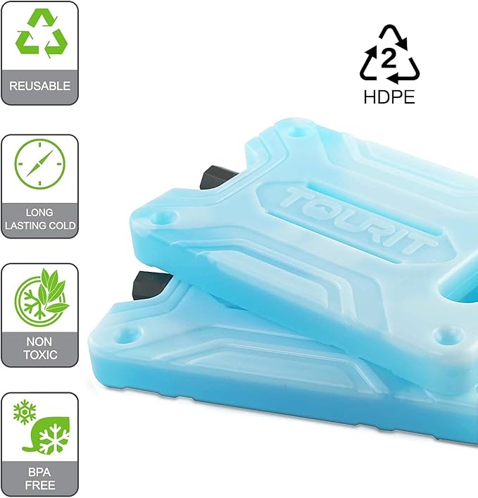 TOURIT Ice Pack for Lunch Box-8.75” x 5.5”-Reusable Long Lasting for Lunch and Cooler Bag-Camping, Beach, Picnics, Fishing and More
