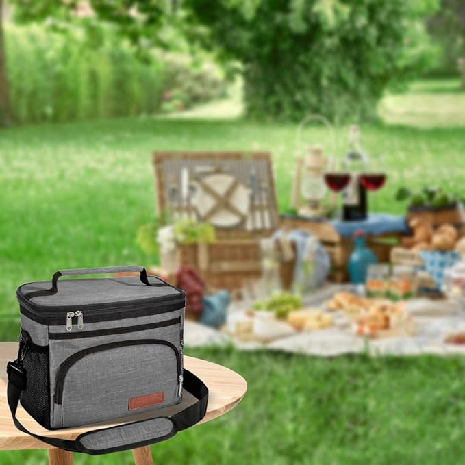 ExtraCharm Insulated Lunch Bag for Women/Men - Reusable Lunch Box for Office Picnic Hiking Beach - Leakproof Cooler Tote Bag Organizer with Adjustable Shoulder Strap for Adults - Grey
