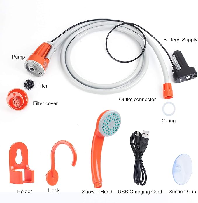 • EASY TO ASSEMBLE AND OPERATE: Just fully submerse the pump in your bucket/tub of water and switch on the power supply then position the shower head by using the supplied hook, holder or suction cup. Finally the water is pumped up from bucket and you get a nice flowing shower. All parts are also easily assembled so it is no doubt a user friendly shower head.