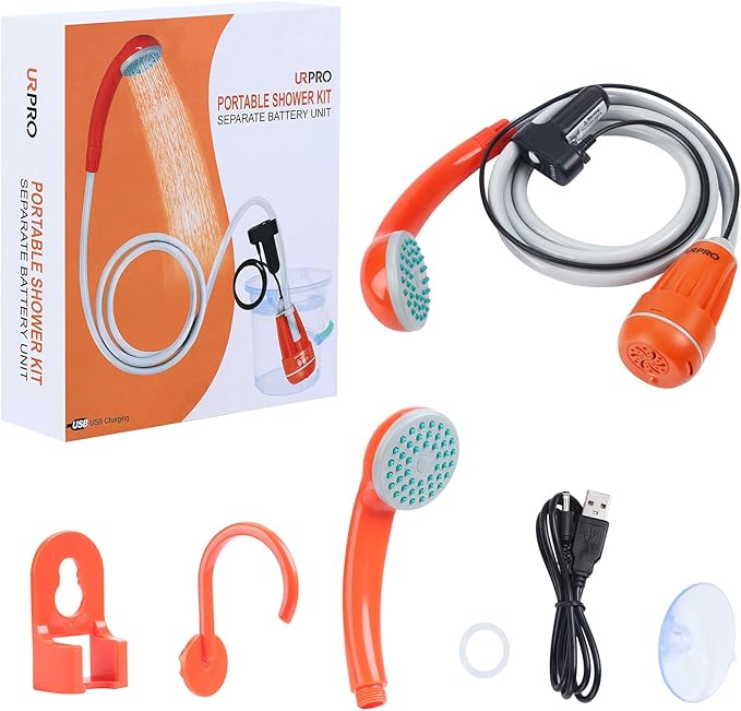 Portable Camping Shower, Outdoor Shower Head, Shower Pump, Detachable USB Rechargeable Batteries, Pumps Water from Bucket, for Camping, Hiking, Pet Cleaning, Pet Shower, Car WashingB08FDL2J1W