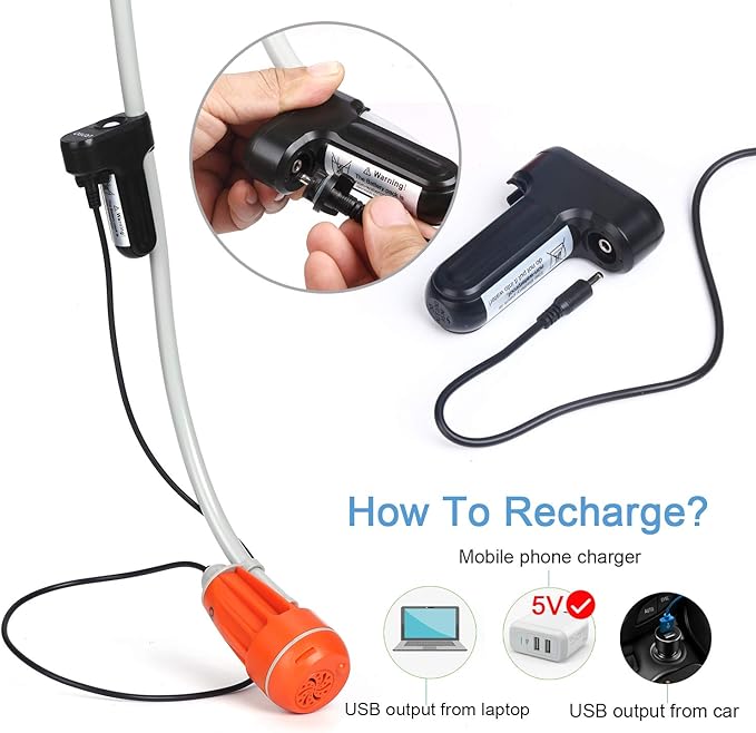 • DURABLE- It comes with a detachable USB rechargeable 2200mAH battery (w/ external on/off switch) which is separated from the pump. This is an upgraded design that no need to immerse the battery into water therefore it can protect and enhance the battery life.