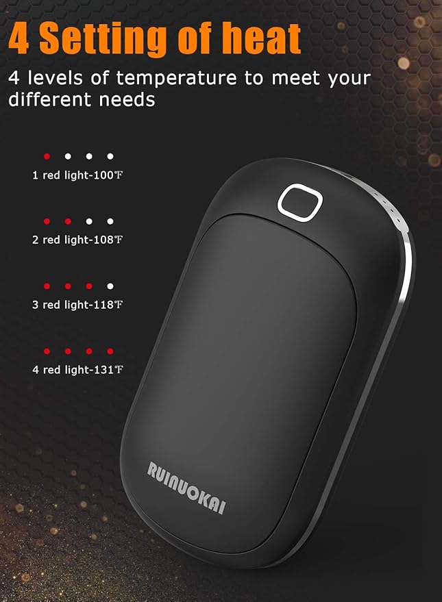 - Fast Heating & 4 Levels - Press the switch for 3 seconds to TURN ON and instantly release the warmth for you. Rapidly warm up double sides in seconds. 4 levels of temperatures 100°F/108°F/118/131°F at your choice.