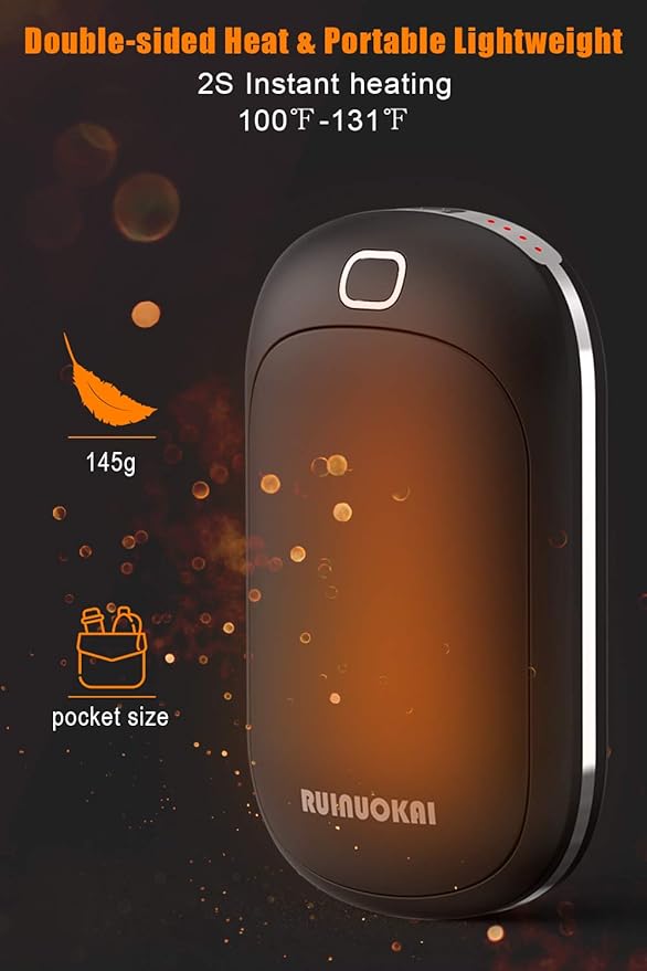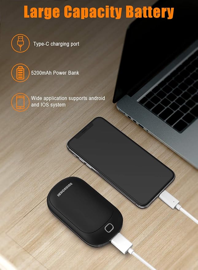 Hand Warmers Rechargeable, 5200mAh Electric Portable Pocket Hand Warmer Heater Pocket Warmer Dual-Sided Quick Heating Great for Outdoor Fishing Hunting Golf Camping Gifts for Men Women