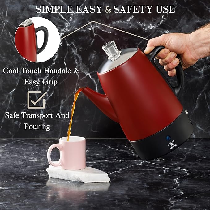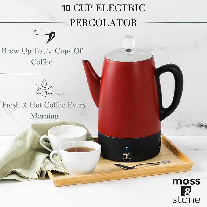 - Customer Support & Gift Ready: Moss & Stone electric coffee percolators come with a 1-year warranty and reliable customer support for your peace of mind. This stylish electric coffee maker also makes a thoughtful gift for coffee lovers — perfect for Christmas, birthdays, Mother’s Day, anniversaries, housewarmings, and more.