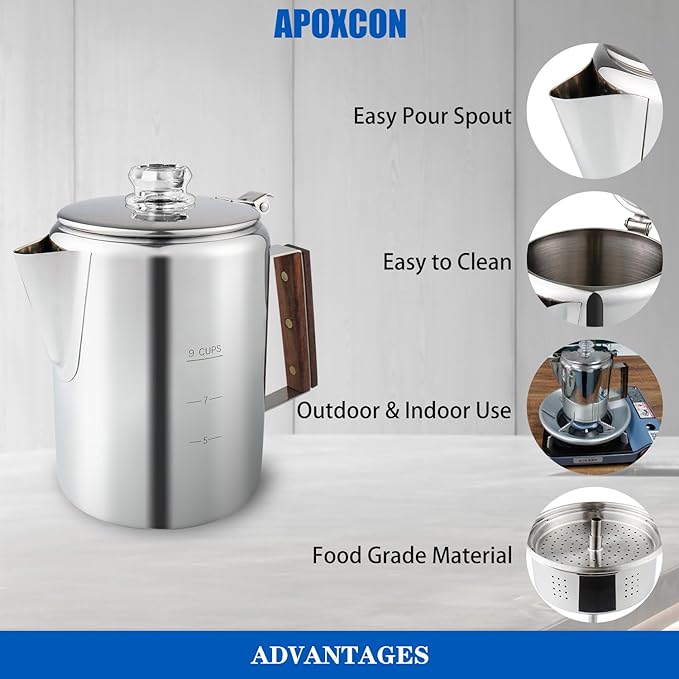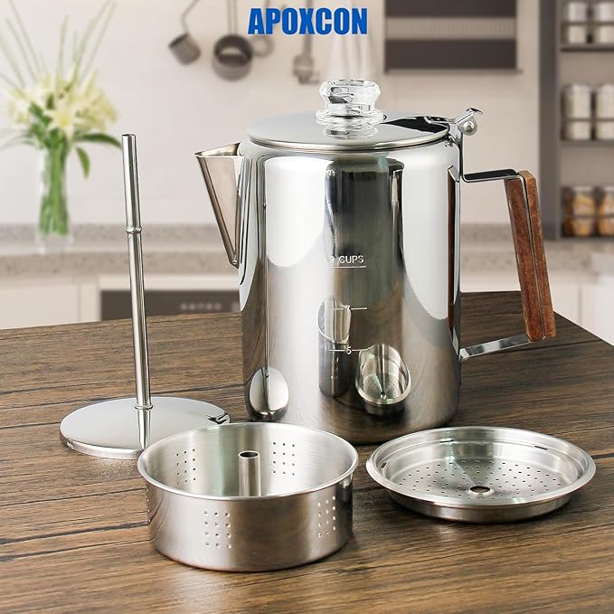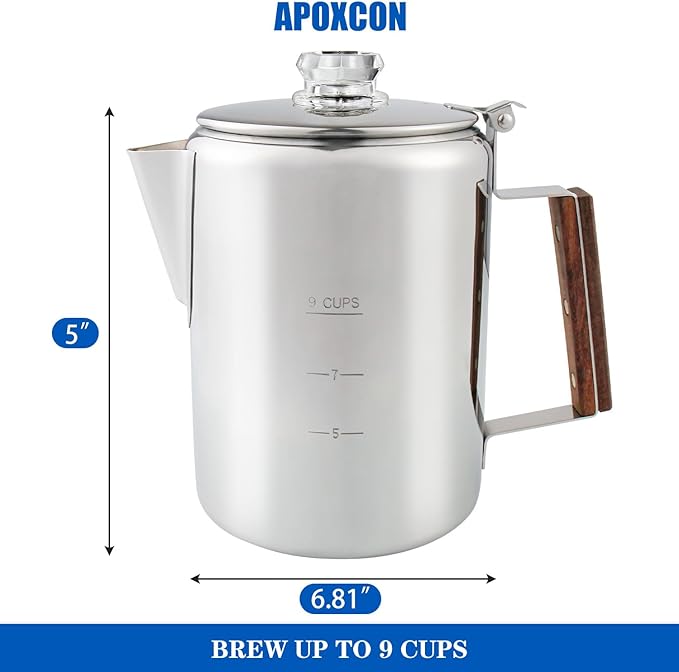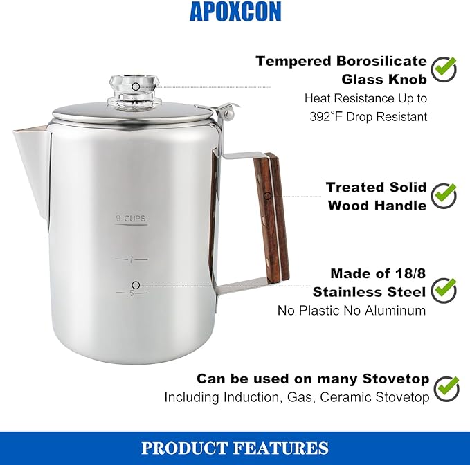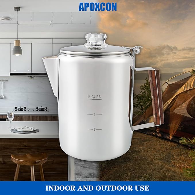 - OUTDOOR & INDOOR USE - The percolator is built for outdoor & indoor use. It’s suitable for induction cooker, ceramic electric stove top and gas stove top, as well as grills and campfires, perfect for traveling, camping & outdoor use.