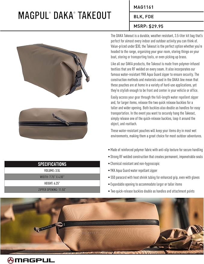 Magpul DAKA Takeout 3.5L Tactical Bag All-Purpose Durable Water-Resistant Heavy Duty Zipper Pouch
