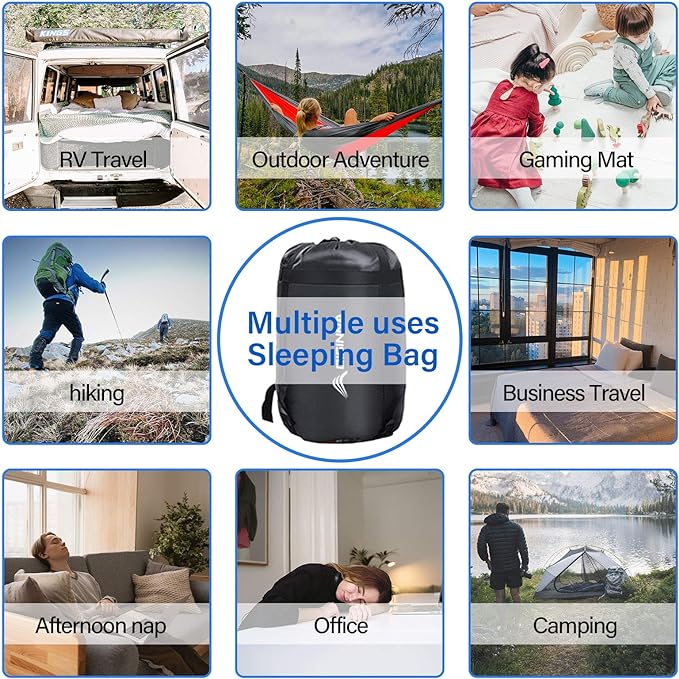 - 【COMFORTABLE & SKIN-FRIENDLY】: We adopt 210T polyester as surface material and hollow cotton as filler. For this reason, the sleeping bag is quite soft, comfortable, skin-friendly and waterproof. It can help you to get rid of a tiring day of hiking, camping, travel , outdoor activities or any other exploration.