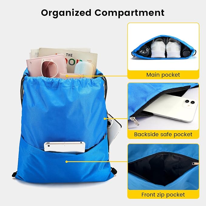 Vorspack Drawstring Backpack Water Resistant String Bag Sports Sackpack Gym Sack with Side Pocket for Men Women