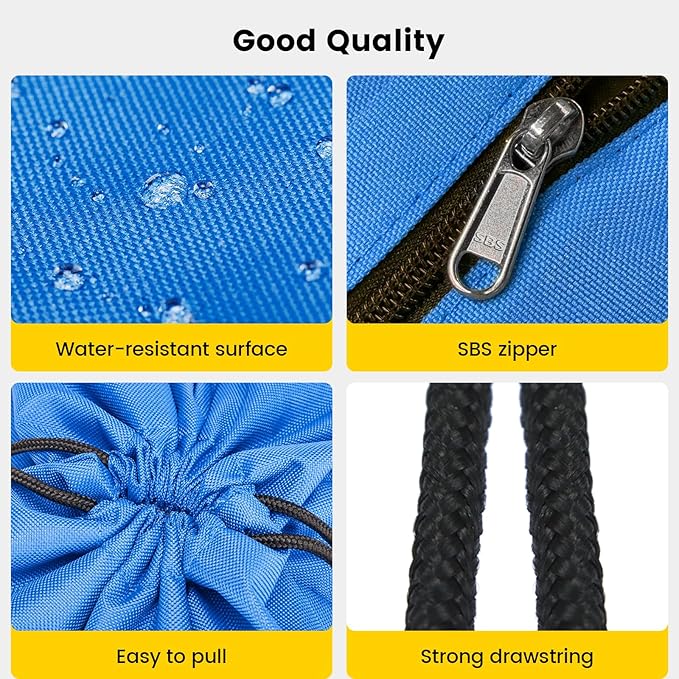- Large capacity; Size 18*15 inches with 3 functional compartments; 1 main large compartemnt with drawstring closure; 1 front pocket & 1 side pocket with SBS zipper