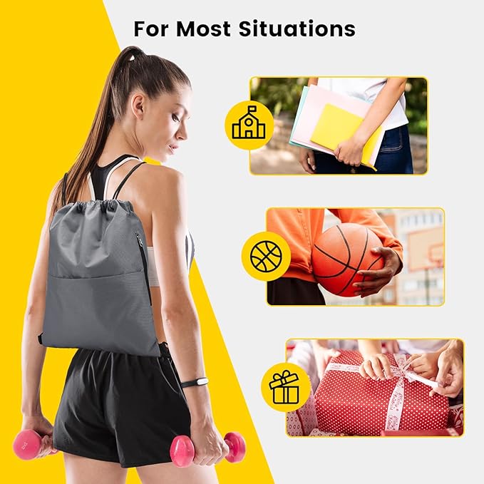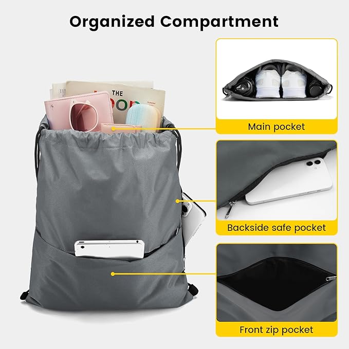 Vorspack Drawstring Backpack Water Resistant String Bag Sports Sackpack Gym Sack with Side Pocket for Men Women