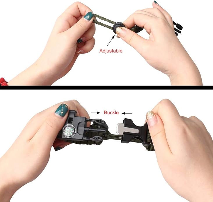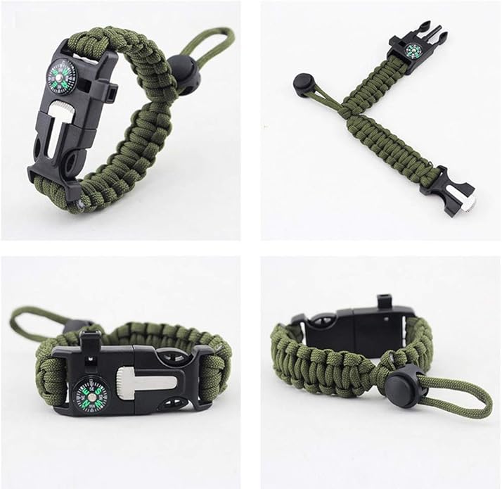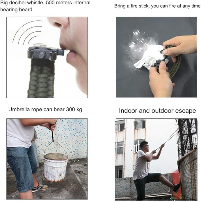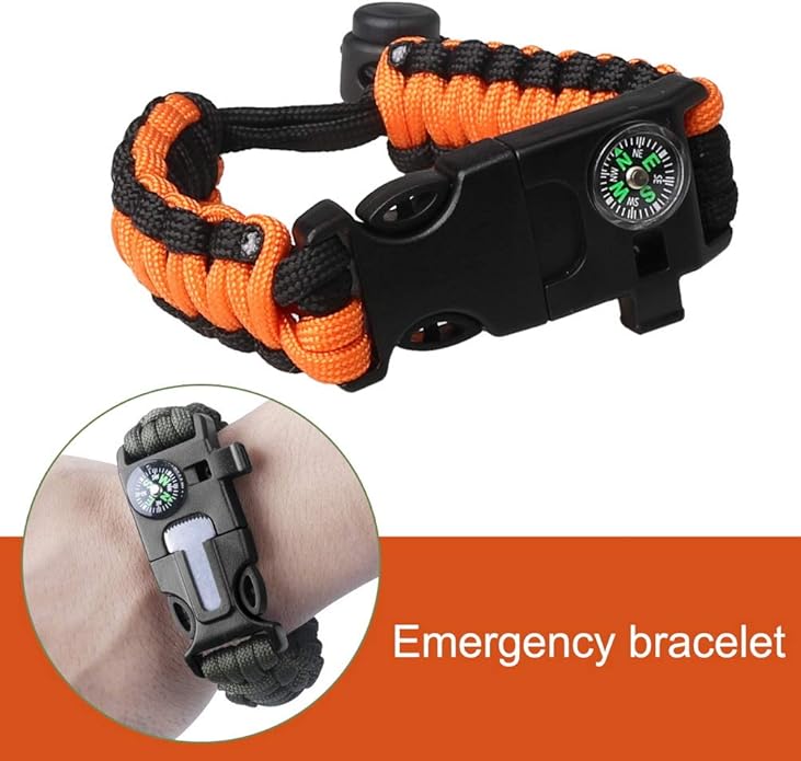 - Paracord Rope - The 2.5 meters long and withstand 550 lb tension for emergency help, such as climbing, making traps, stop bleeding or building tents.