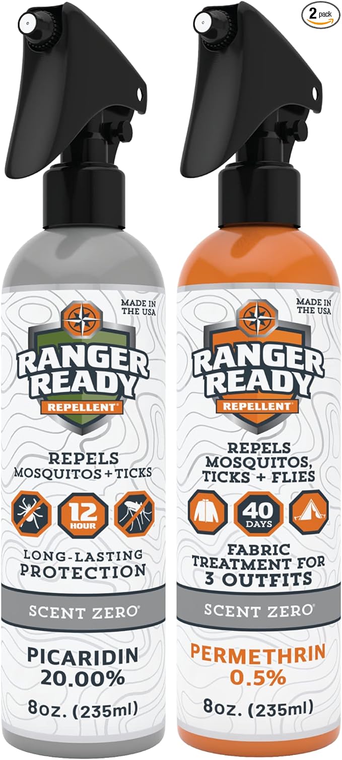 Ranger Ready Repellents P2Pak Permethrin + Picaridin Tick & Insect Repellent, Scent Zero, 8 Fl Oz. (Pack of 2)