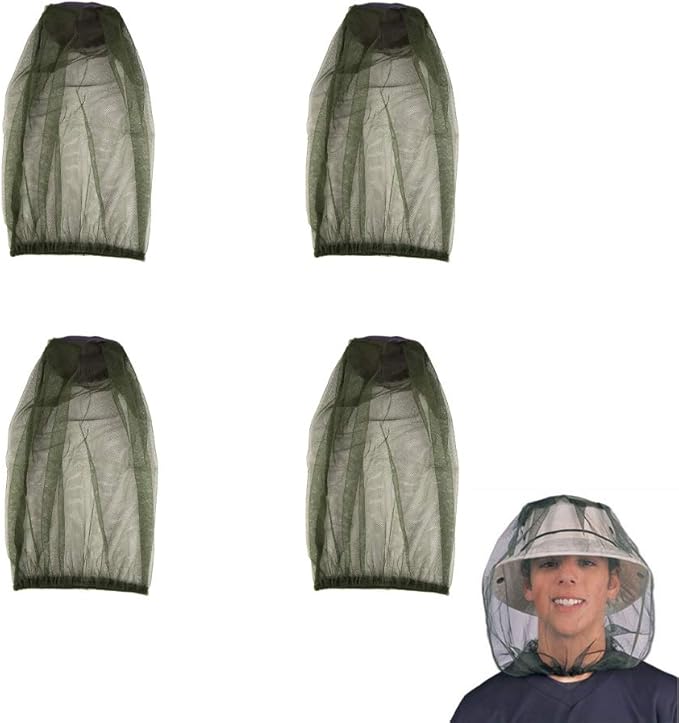 4 Pack Premium Mosquito Head Net Mesh Hat Face Netting Lightweight Durable Protective Cover Fly Insects Bugs Preventing for Camping Hiking Fishing Outdoor Activity
