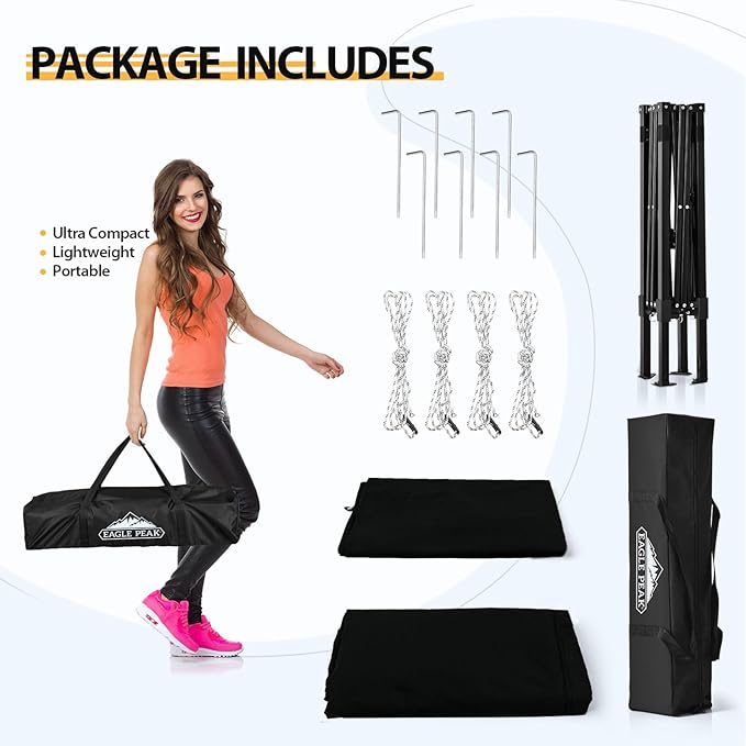 - EASY TO SETUP AND PUT AWAY: The EAGLE PEAK pop up system is more flexible and makes setup easy. The frame glides when opening and closing, enabling one person to easily open and close the canopy .