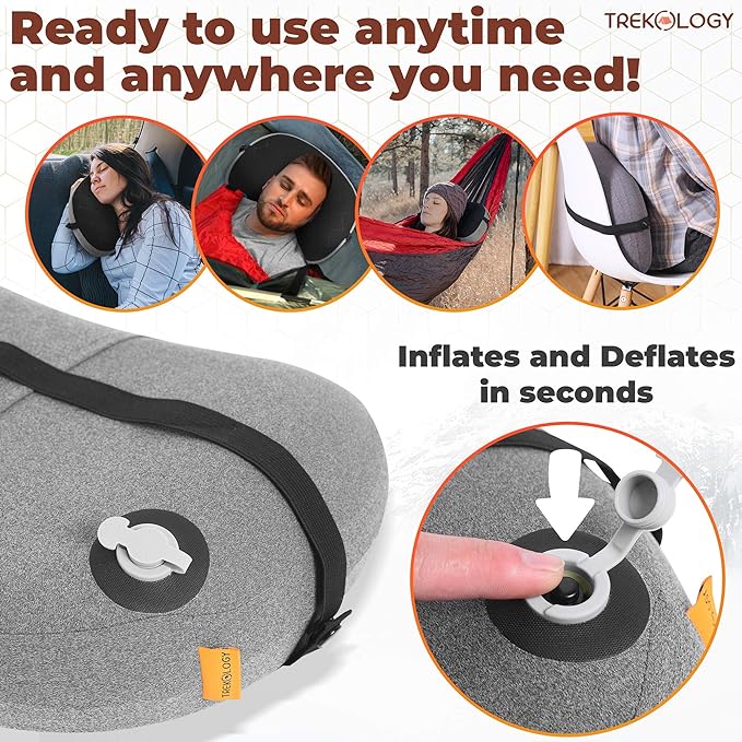 - Compact & Lightweight: TREKOLOGY Inflatable camping pillow weights only 4.1 oz (120 g) and folds down to 6'' × 4'' × 3'' (15.2 x 10 x 7.6 cm), lighter and smaller than a soda can - portable in any backpack for travel, camping, backpacking, hiking, tent, hammock or as a great beach pillow!