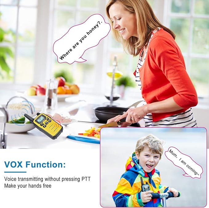 - Key Function 👉 Walkie talkies for kids3 pack are easy to use,also suit for adults kids or elderly.3 Pack two way radios for boys girls can be transmitting and receiving when you set the channel and the ctcss are the same.The rechargeable walkie talkies support VOX,flashlight,DCM,USB CHARGING,ect.blue,yellow,pink walkie-talkies for child make colorful when using,3 pack walkie-talkies for children can be easy to use with other FRS walky talky also.