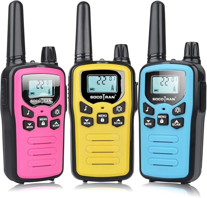 - Clear & Steady Voice👉SOCOTRAN Kids Walkie Talkies 3 pack come with the latest version of walkie-talkie accessories and high-quality microphones support clear and stable long-distance transmitting & receiving , ensuring that you can keep in touch with family ,kids,your friends without a mobile phone signal.Clear voice kids walkie talkies suit for camping,hiking,biking,off-roading,road trip,family travel,outdoor play games,ect.