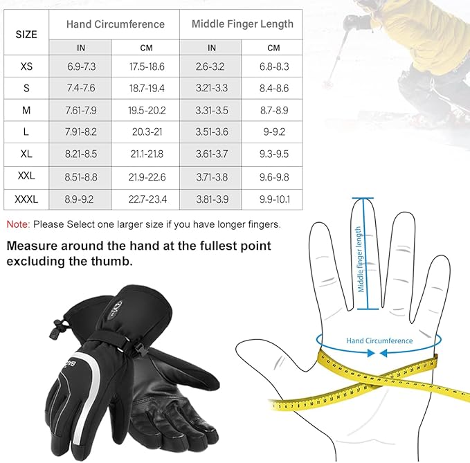 - [Touch Screen Design] This electric gloves has a conductive touch screen design on the index finger. We can easily access our smart devices without taking off our warm gloves. Hand warmer gloves are suitable for skiing, snowboarding, hunting, ice fishing, sledding, motorcycles, cycling, snow shoveling and anyone with poor blood circulation