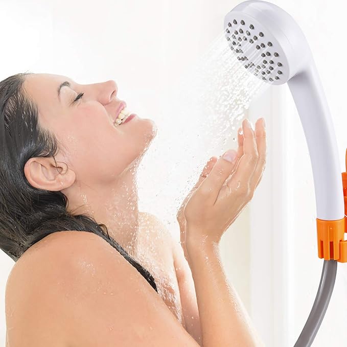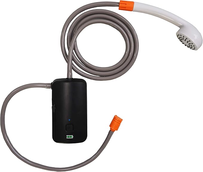 - UPGRADED STRONG SHOWER PUMP- Portable outdoor camping shower set with battery supply is ideal for Campers and Hikers. Powered by a 4400mAh rechargeable battery, it turns a pool of water into a gentle shower-like stream. Easy and simple use, it is the perfect accessory for camping and hiking for on-the-go shower and cleaning.