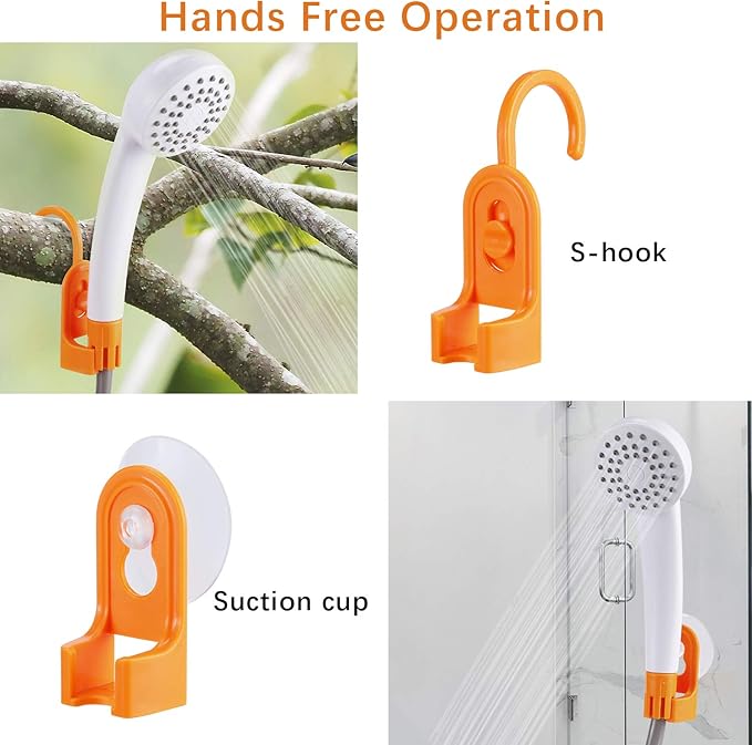- EASY TO ASSEMBLE AND USE - Easy to install and use, portable size easy to carry, perfect for indoor and outdoor use. Take a shower after swimming in the sea, playing on the beach or when go out for camping. Packing included a hook and suction cup to hang the shower, suitable for any occasion, quick and convenient.