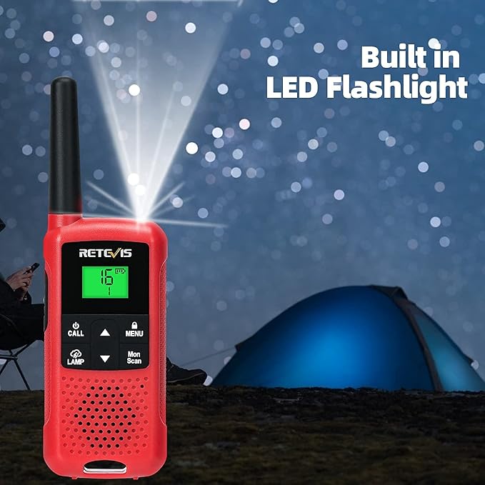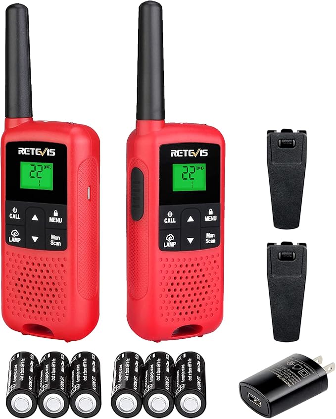 Retevis RT49B Walkie Talkie, Rechargeable Walkie Talkies Long Range, 2 Way Radio for Adults, 22CH, NOAA, Flashlight, Family FRS Radio, Red Walkie Talkies for Camping 2 Pack