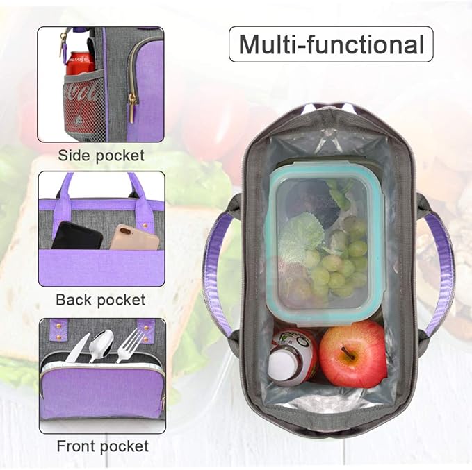 IDEATECH Lunch Bags for Women, Insulated Lunch Bag for men, Large Reusable Tote Bag, Leakproof Cooler Lunch Bags for Work, Cute Reusable Lunch Bags, Womens Lunch Bag for Office Picnic(Purple)