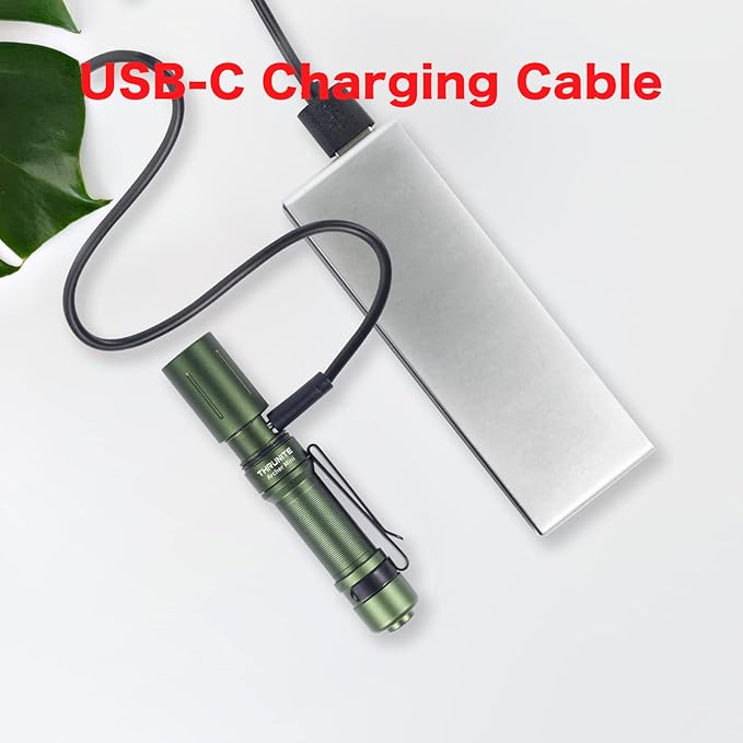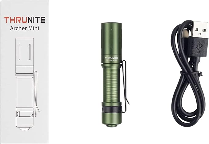 ThruNite EDC Flashlight Archer Mini, 405 Lumens Tail Switch LED Flashlight, USB C Rechargeable Little Pocket Penlight for Camping, Outdoor, and Emergency - Dark Green Cool White
