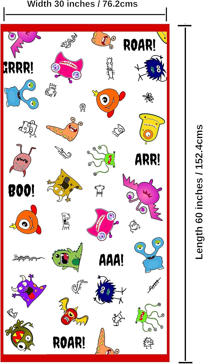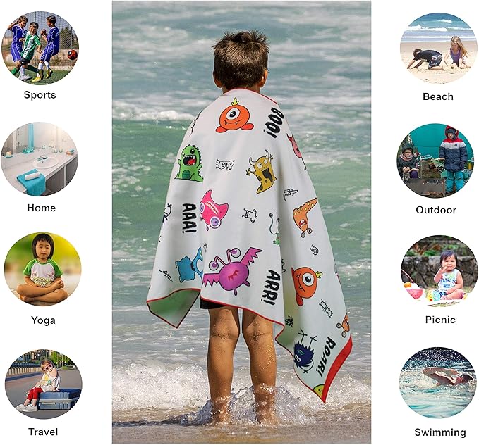 Microfiber Beach Towel for Kids - Thin and Large (30"x60") - Monsters - Absorbent, quick dry, sand free, lightweight, blanket - toddler, girls, boys - For Sports, Pool, Picnic, Camping, Travel, Swim