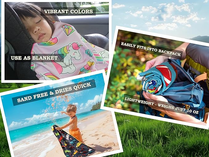 - WIDE USE - This is more than just a gorgeous beach bath towel and soft portable blanket; It is suitable for use at home, beach, pool, swimming, picnic, sleepover, travel, vacation, cruise, exercise, gym, fitness, camping, hiking, yoga, outdoor, water park, tennis, sports, sporting events, etc; It is a multi-purpose towel and a wonderful gift for little ones