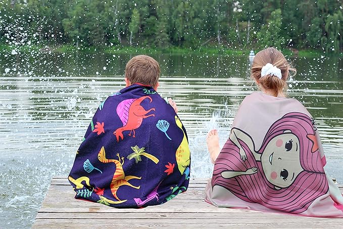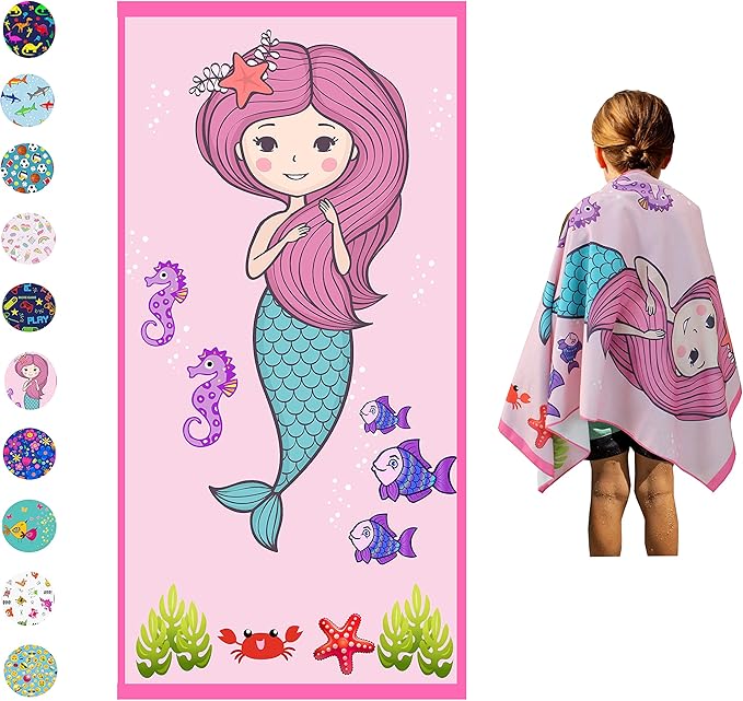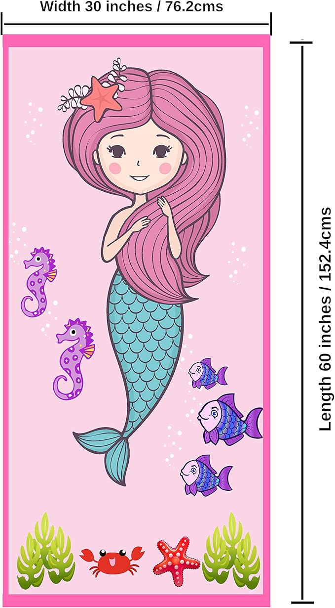 Microfiber Beach Towel for Kids - Thin and Large (30"x60") - Mermaid - Absorbent, quick dry, sand free, lightweight towels blanket - toddler, girls - For Sports, Pool, Picnic, Camping, Travel, Swim