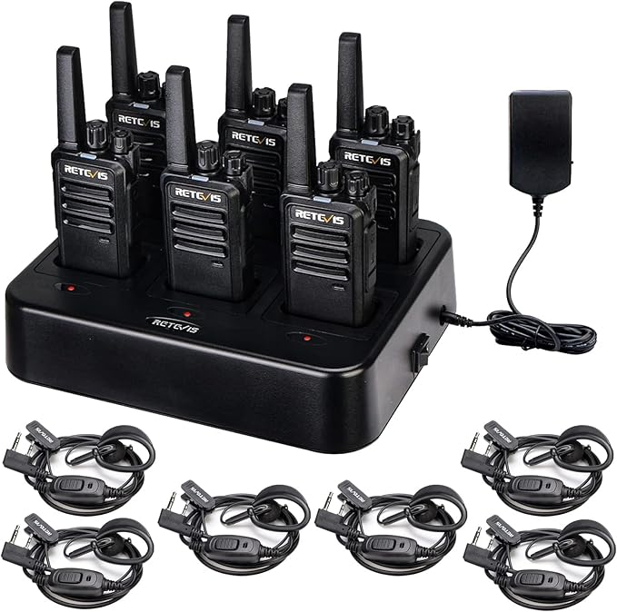 Retevis RT68 Walkie Talkies with Earpiece, Portable FRS Two-Way Radios Rechargeable, with 6 Way Multi Unit Charger, Hands Free, Long Range, Rugged 2 Way Radios 6 Pack for Adults School Church