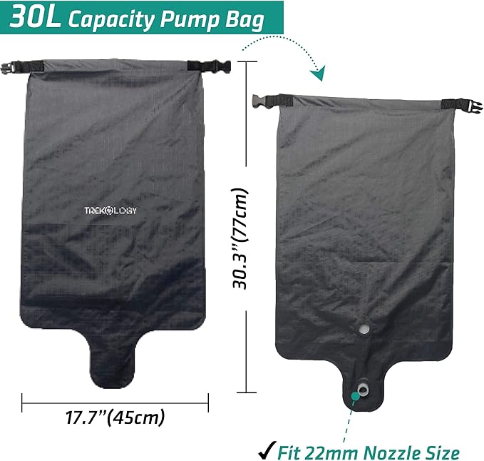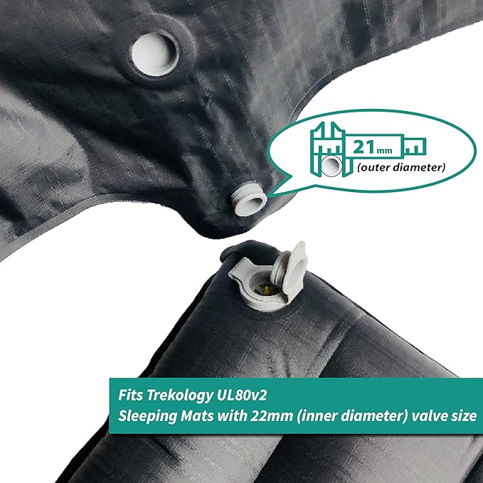 - Fits Trekology UL80v2 Sleeping Mats (The nozzle is 21mm male-type and fits 22 female-type valve), not for Trekology pillows. 30L capacity - inflate the UL80 with ease.