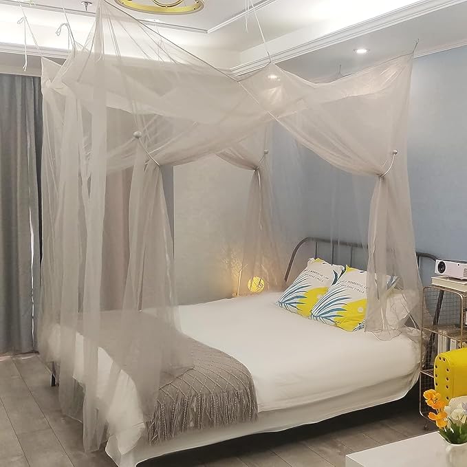 No-See-Um mesh Square Mosquito Net for King Size Bed 2 Openings Netting Mosquito Net for Beds, Finest Holes Mesh 2000 Mosquito Netting for Bed (Square King Grey Color)