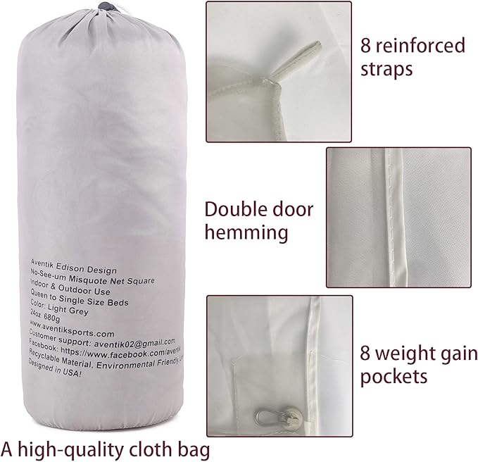 - Pack: The 8 points hanging system don' t require special skills, for home and travel. You can hang it from the corners of your four-post bed or any tree branch for an added touch of style and elegance. The height can be adjusted freely according to your needs. When it's set up properly, it is a large box-shape, and definitely big enough to cover a full-sized mattress. Extra string and a carry pouch. Super lightweight and easy to travel within your carry-on luggage.