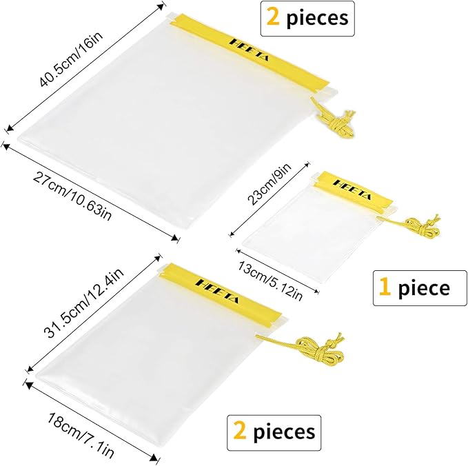 - 5-Pack Clear Waterproof Dry Bag - Water-Resistant: Our dry bag has the overall waterproof capability with PVC material. The Matte and transparent surface allows you to use a cell phone without opening the bag