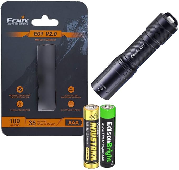 Fenix E01 V2 100 Lumen LED flashlight with EdisonBright AAA alkaline battery bundle (Black)